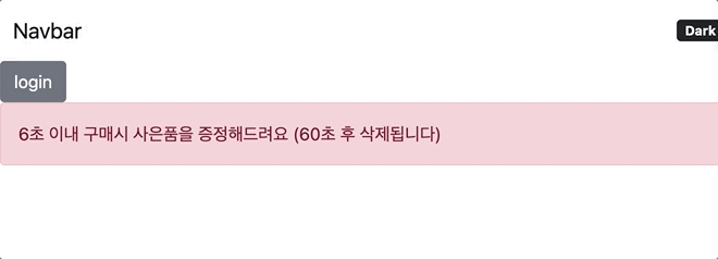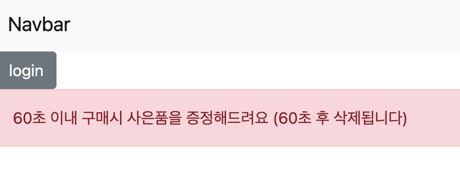 <div class="alert alert-danger" id="사은품"><span id="초">60</span>초 이내 구매시 사은품을 증정해드려요 (60초 후 삭제됩니다)