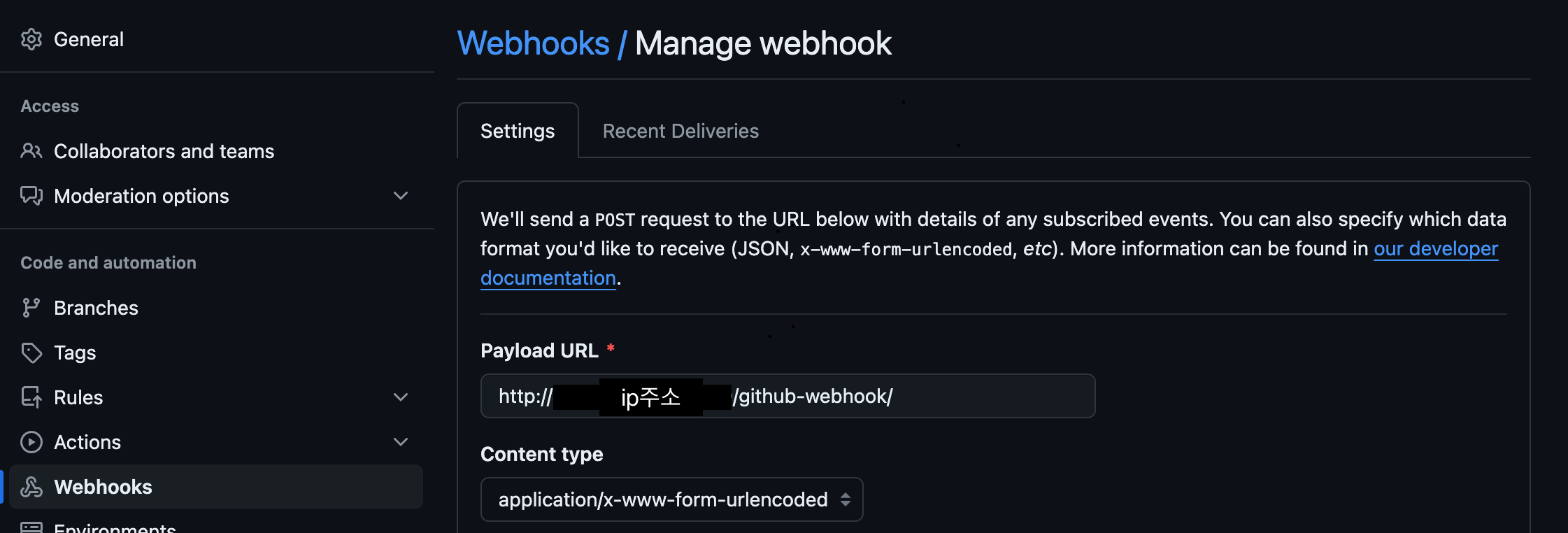 Git 저장소에 Webhook을 설정하여 코드 변경 시 Jenkins가 자동으로 빌드를 트리거하도록 합니다.