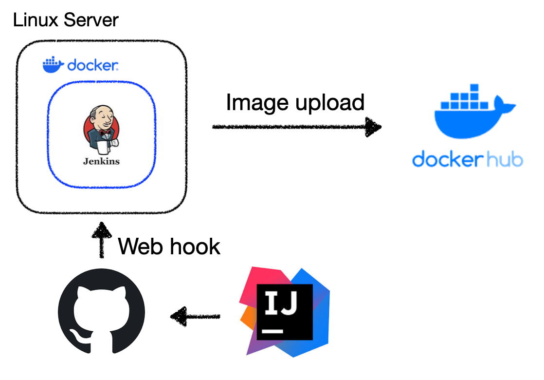 GitHub에서 코드를 가져와 빌드Docker 이미지 생성 후 DockerHub에 PushDockerHub 이미지를 PullRedis, MySQL 등과 연동해 컨테이너 실행application.yml)은 Git에 포함하지 않고 서버 내부에 존재pipeline {