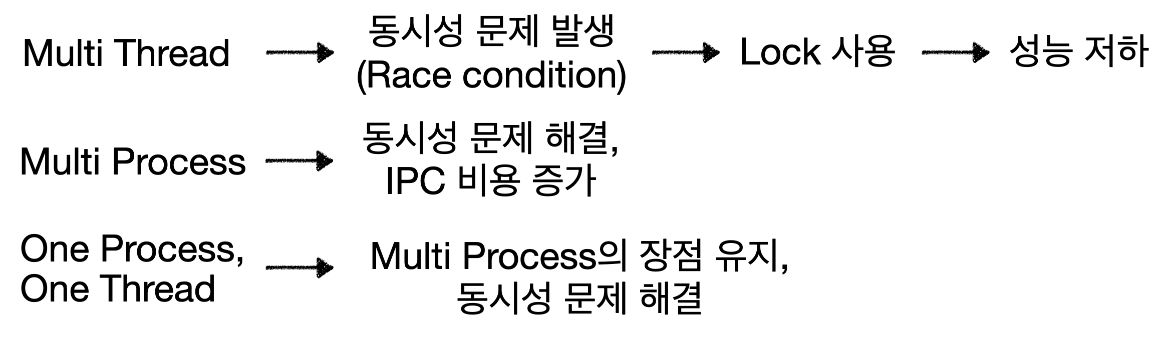 따라서 One Process, One Thread Architecture가 설득력이 있음.