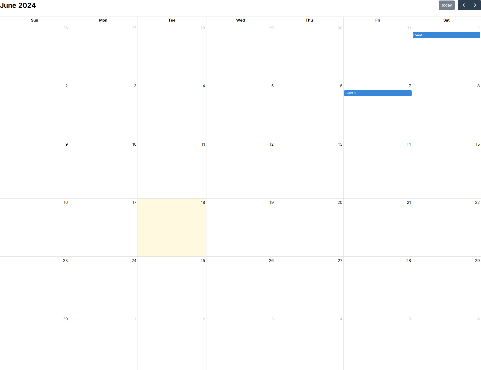 { title: 'Event 1', date: '2024-06-01' },
