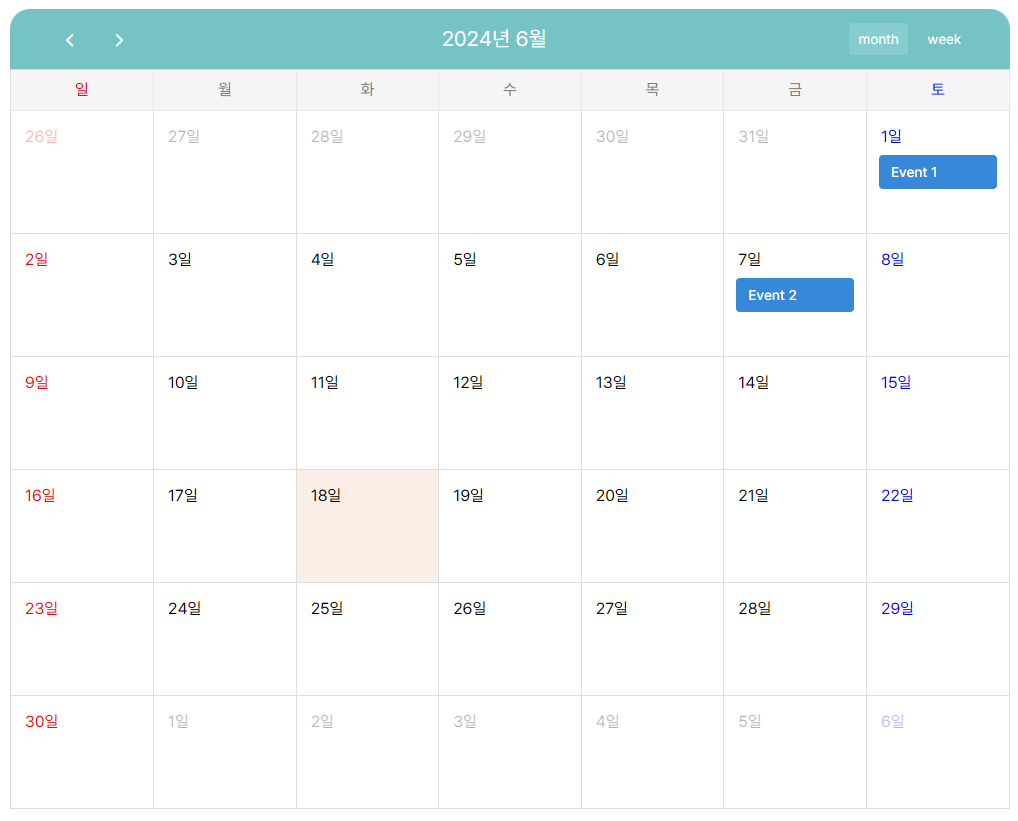 fullcalendar 사용을 선택한 이유로는 비교적 자유로운 커스텀 스타일이 가능하기 때문도 있습니다.