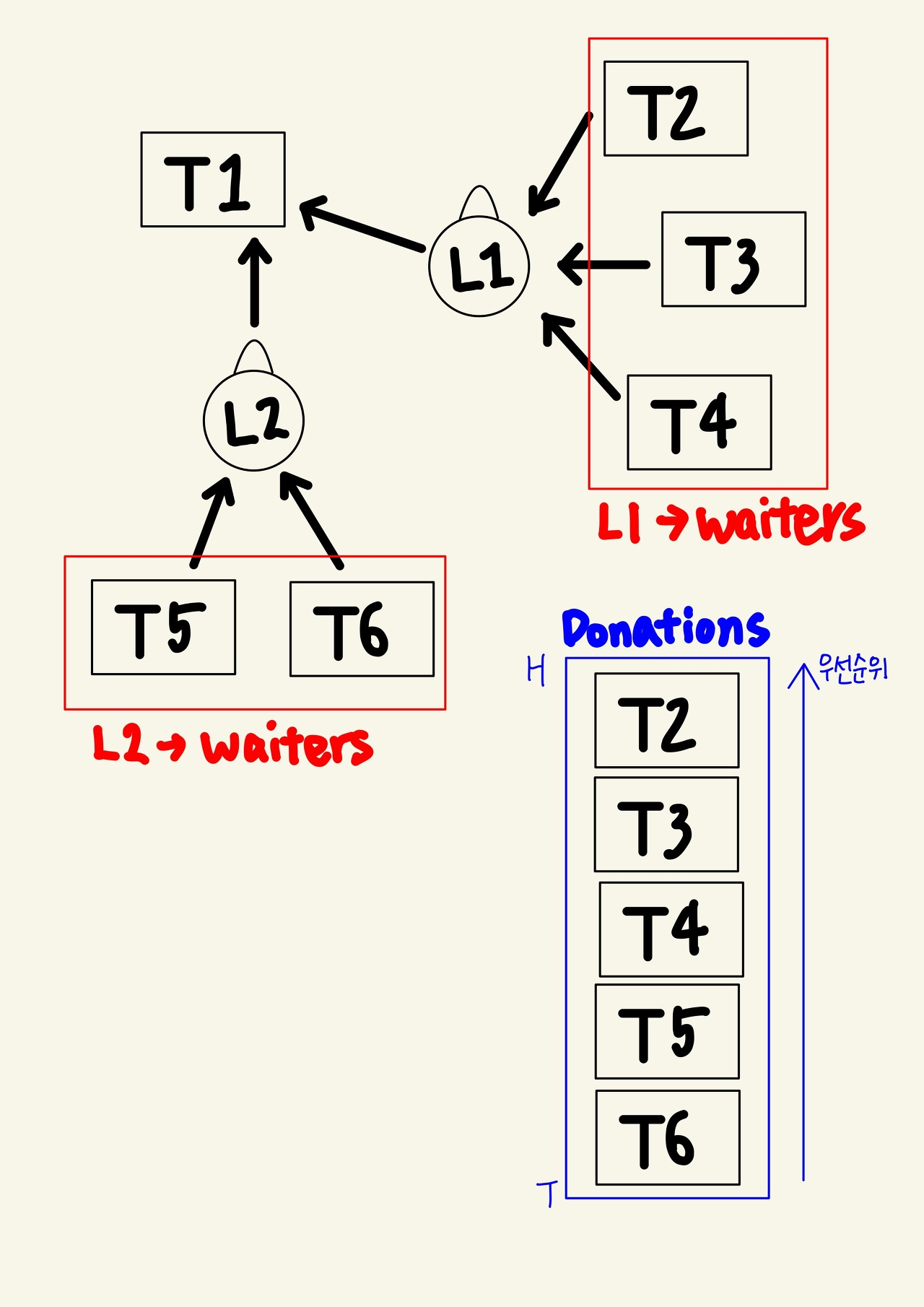 모든 waiters의 요소들을 donation list에 저장하기