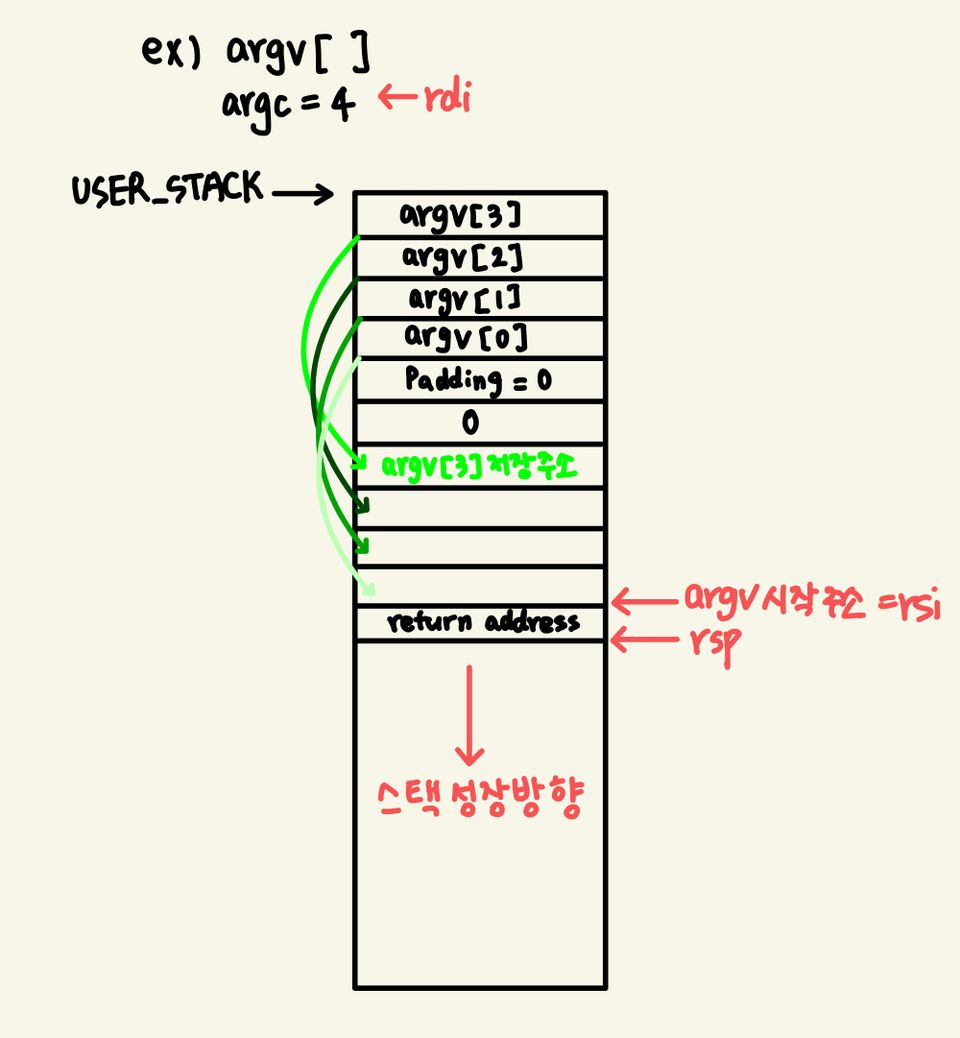 if_->rsp--; // 스택 포인터를 1바이트씩 이동하여 단어 정렬을 위해 0으로 채움