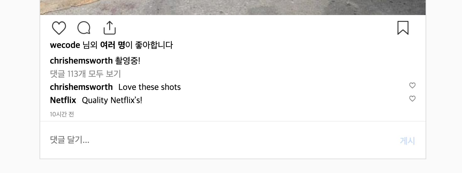 댓글 부분은 미리 디폴트 댓글을 두개 정도 작성해 놓고 새로운 댓글이 밑에 추가되는 형식으로 구성해보았다 엔터를 누를때와 게시 버튼을 누를 때 댓글이 게시되도록 하였고 댓글의 value 값을 가져와 값이 비어있으면 게시 버튼이 활성화되지 않게 하였다