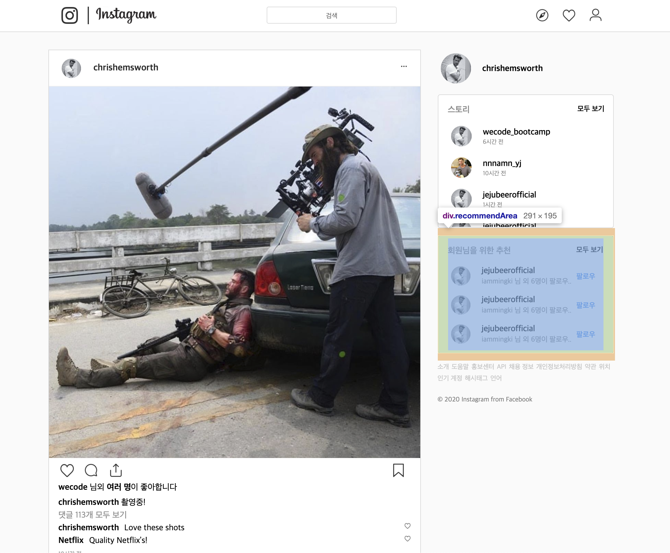 인스타그램 로그인 부분에 버튼 이벤트를 넣었다