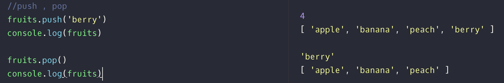 반대로 pop를 사용하여 값을 제거 할수도 있습니다.
