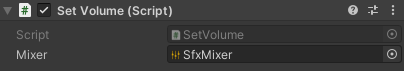 Slider를 드래그할 때, 사운드가 조절되도록 만들 것이다. 이때 주의해야할 점은 AudioMixer의 최소 볼륨은 -80, 최대 볼륨은 0이라는 것이다.