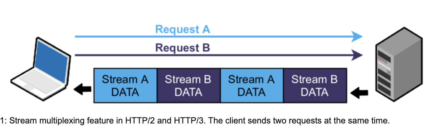 바로 위에서 frame - message - stream - connection 그림에서 봤듯이, HTTP 헤더 메세지를 바이너리 형태의 프레임으로 나누고 하나의 커넥션으로 동시에 여러개의 메세지 스트림을 응답 순서에 상관없이 주고 받는 것을 멀티플렉싱(multiplexing)이라고 한다.