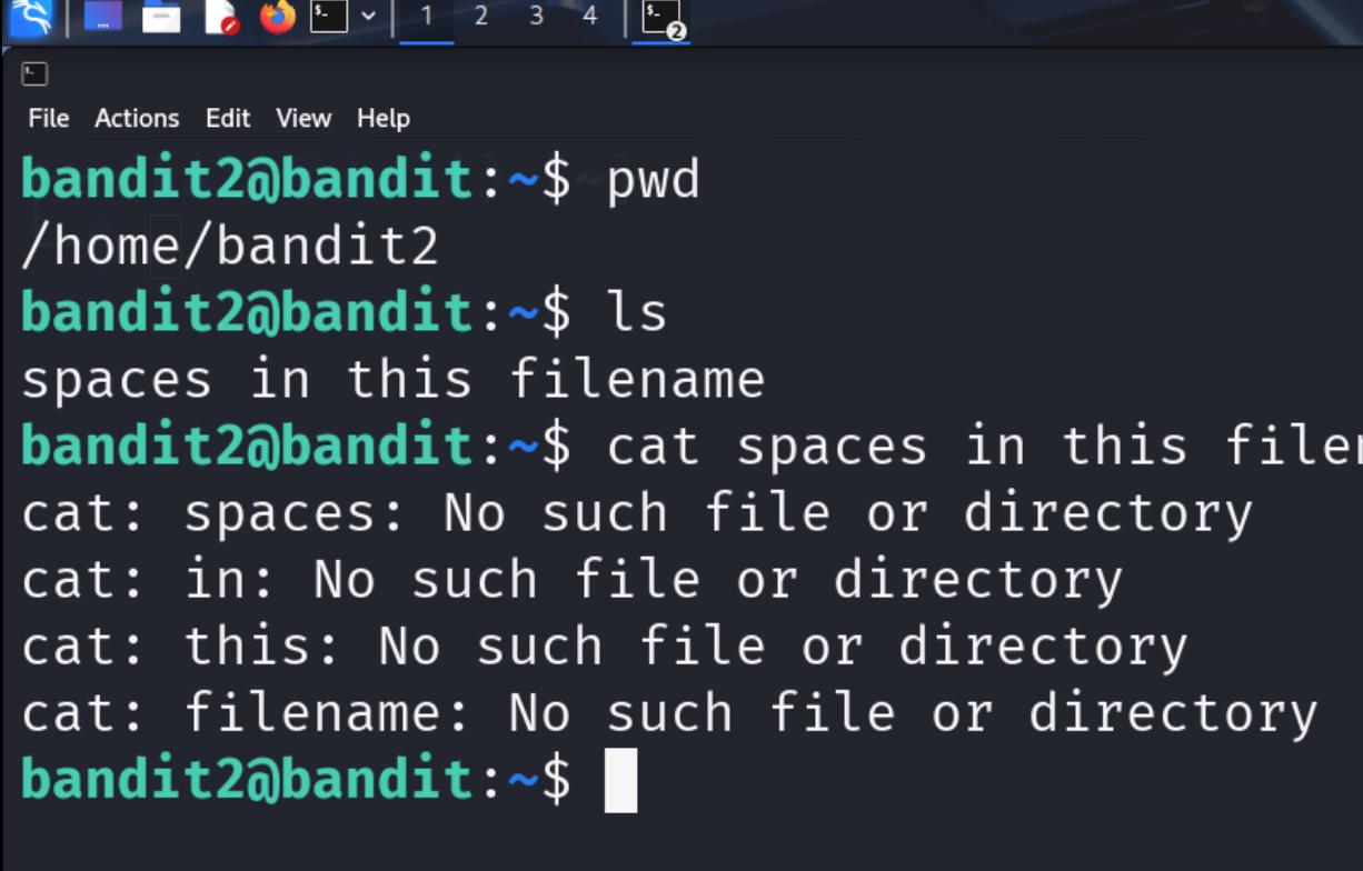 처음에 바로 cat 명령어를 통해 spaces in this filename 이라는 파일을 읽을려고 시도함