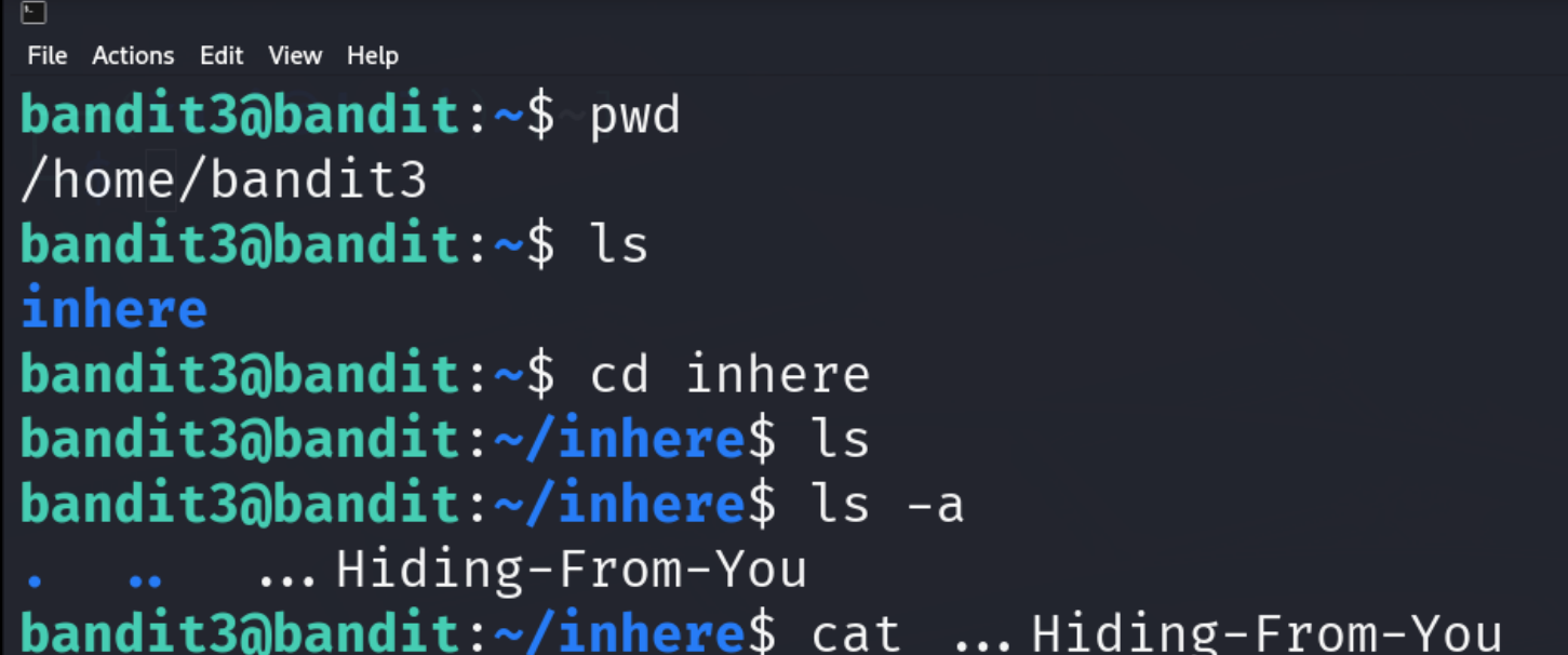 inhere 디렉토리에 숨겨진 파일에 비밀번호가 있다.