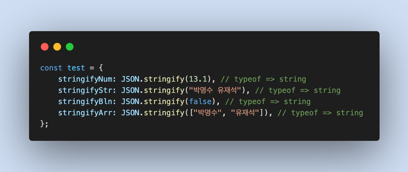 문자열로 변환한다.- 첫번째 인자는 변환할 대상을 받는다