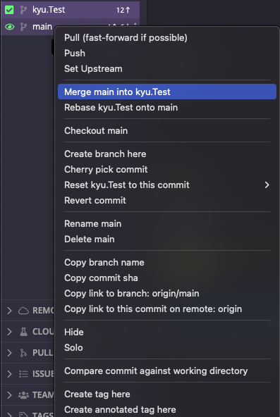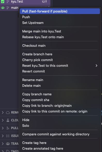 7. 커밋 - 자신 브랜치에서 변경사항이 있으면 우측에 뜸