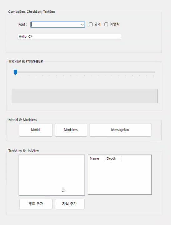 pgDummy.Value = tbDummy.Value; // 슬라이더의 위치에 따라 프로그레스바의 내용도 변경됨