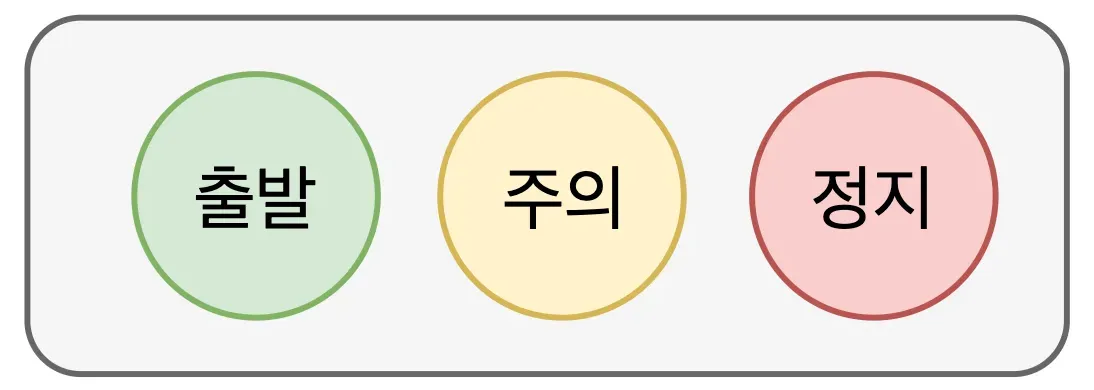 초록불일때는 출발, 노란불일때는 주의, 빨간불일때는 정지를 해주어야함