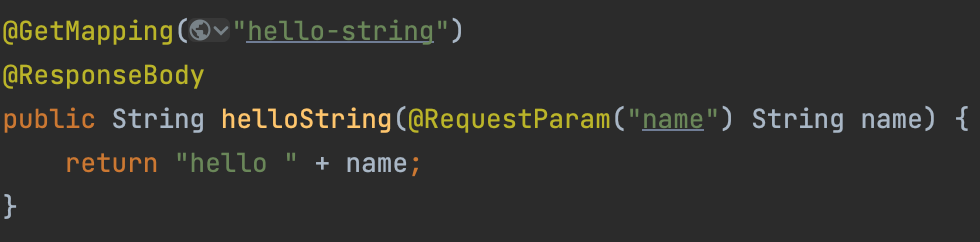 Spring 컨트롤러의 URI 메소드를 GET 방식으로 가져옵니다. 해당 어노테이션은 @RequestMapping(method=RequestMethod.GET, value=..) 의 축약형 표현입니다.