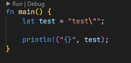 문자열을 선언할 때 내부에서 이스케이프 문자를 사용하기위해 \
