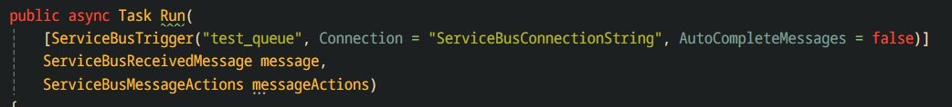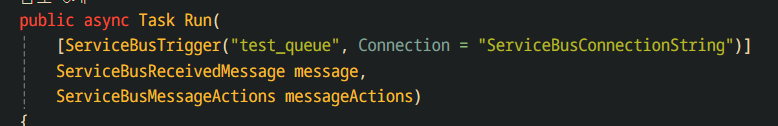 [ServiceBusTrigger("myqueue", Connection = "")]
