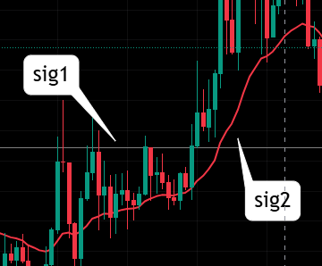 sig1의 가격을 꼬리를 달고 마감한 캔들이 있는 라인