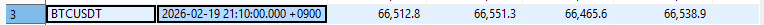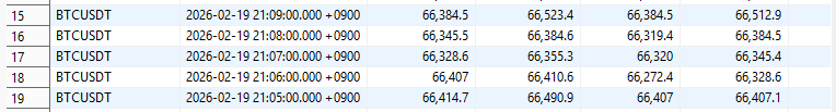 21:09 1분봉의 OHLC이다. 정확한 것을 확인할 수 있고 자동으로 5분봉 데이터가 생성되는지 확인해보겠다.