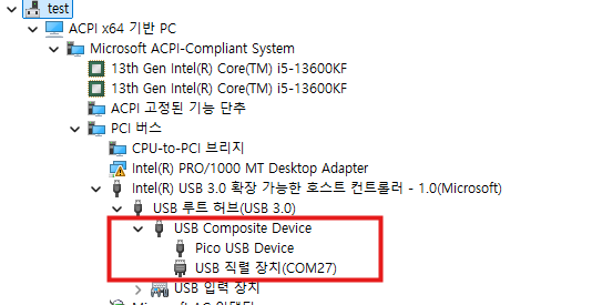 pico에 소스를 올리게 되면 다음과 같은 동작을 예상할 수 있다. vendor specific interface로 인식된 장치의 경우 직접 만든 driver가 올라갈 것이고 CDC 인터페이스는 usbser.sys 드라이버가 자동을 로드되어 가상 COM 포트를 생성할 것이다.