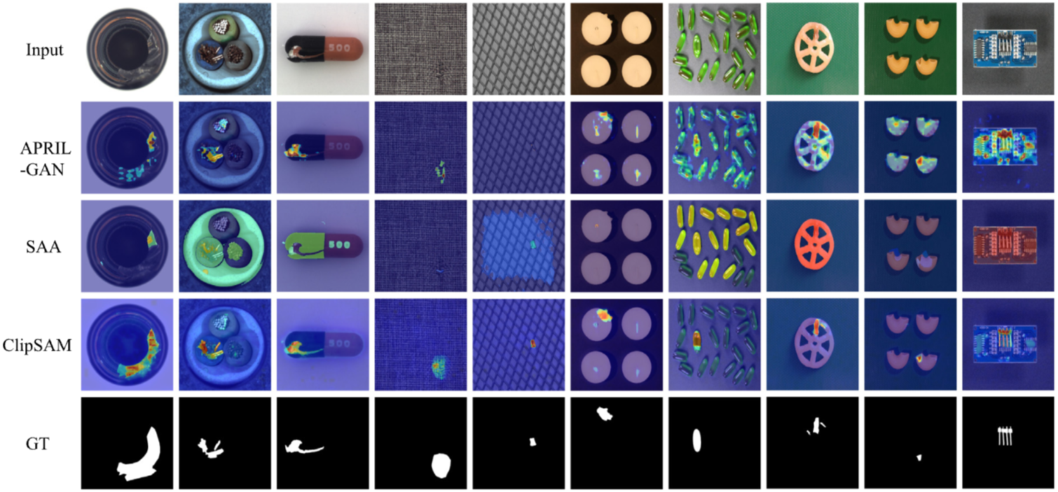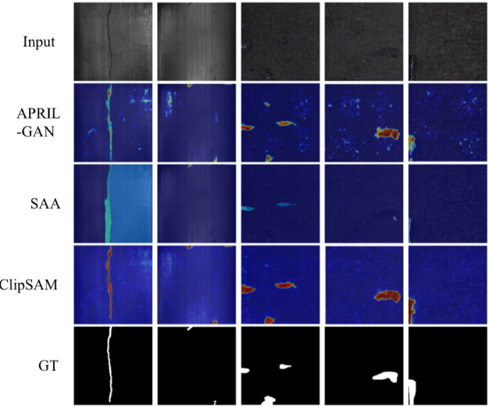 - ClipSAM의 성능을 시각적으로 비교하여 모델의 이상 탐지 능력을 평가