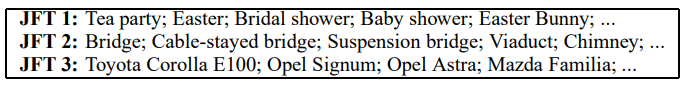 JFT는 1억 개의 레이블이 지정된 이미지를 가지고 있으며 15,000개의 레이블 존재