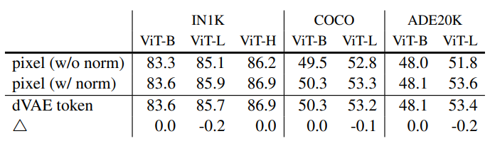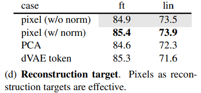 비전에서는 디코더가 픽셀을 재구성하므로 일반적인 인식 작업보다 의미 수준이 낮음. 이는 디코더가 풍푸한 의미 정보를 포함하는 누락된 단어를 예측하는 언어와는 대조적임. BERT에서 디코더가 사소할 수 있지만[14], 이미지의 경우 디코더 설계가 학습된 잠재 표현의 의미 수준을 결정하는데 핵심적인 역할함을 발견.