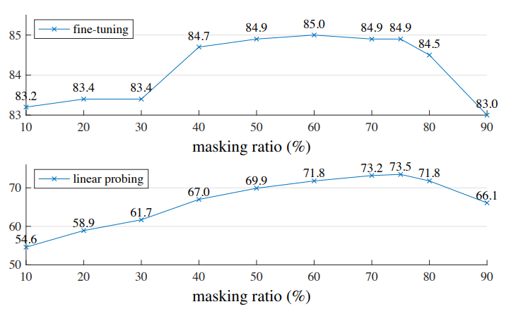 최적의 마스킹 비율은 아래 그림에서 나타나듯, 75%로, 매우 높음