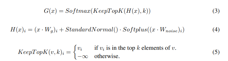 Softmax 함수를 적용하기 전에, 조정 가능한 가우시안 노이즈를 추가하고, 상위 k개의 값만 남기고 나머지는 -∞로 설정