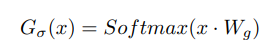 Softmax 게이팅은 비희소 게이팅 함수로, 학습 가능한 가중치 행렬 를 입력 에 곱한 후 함수를 적용함
