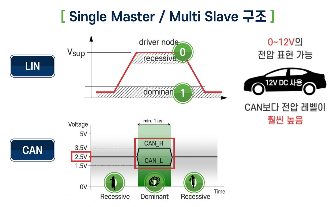 - 차량용 네트워크는 일반적으로 버스 구조 가짐