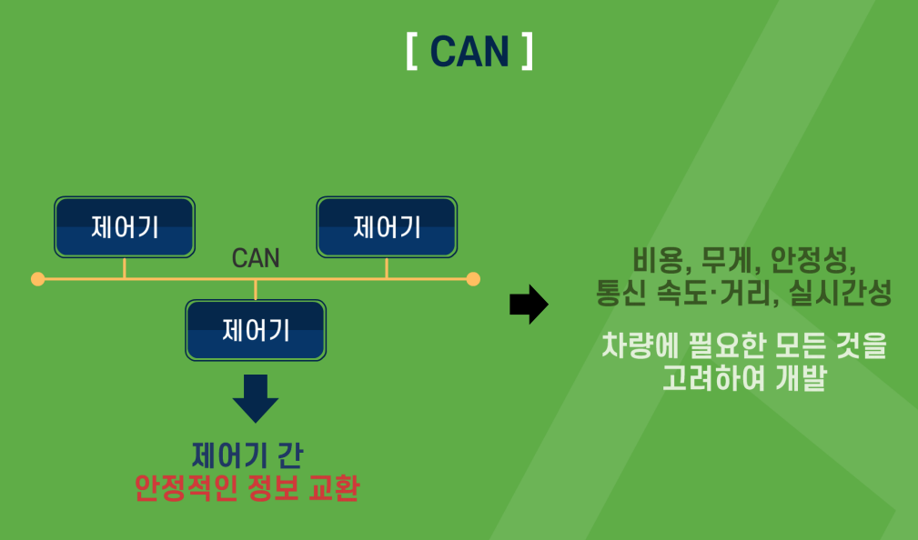- 제어기의 추가/제거 간편 + 차량 내 효율적 정보 공유 + 새로운 기능 적용 용이