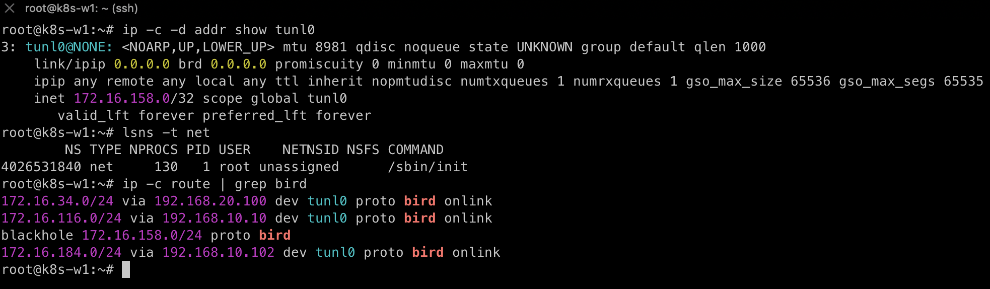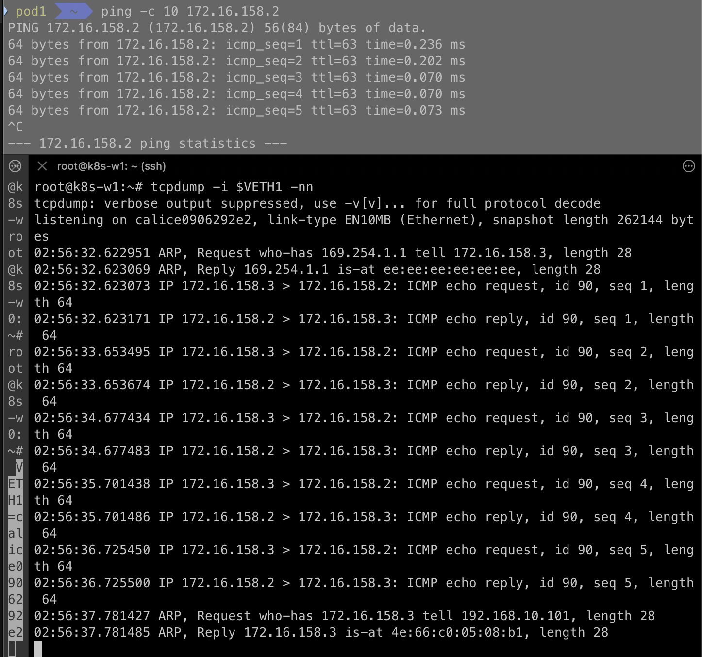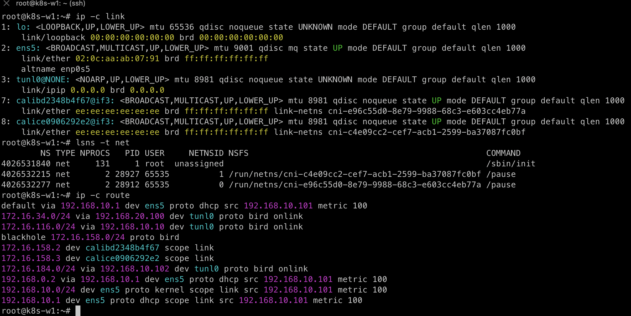 ⇒ 상대방 ip와 통신할 때 tunl0 인터페이스였으나 사라지고 ens5로 변경