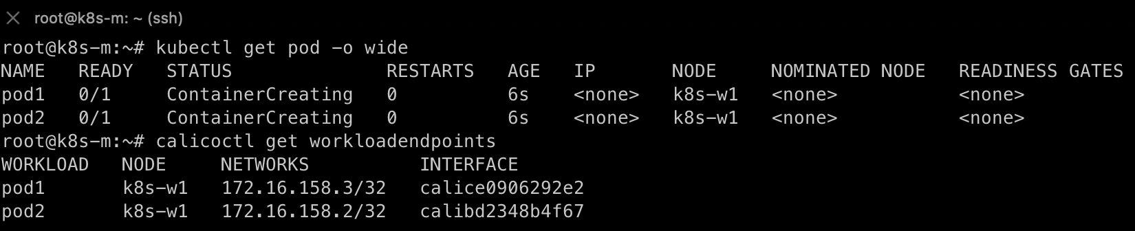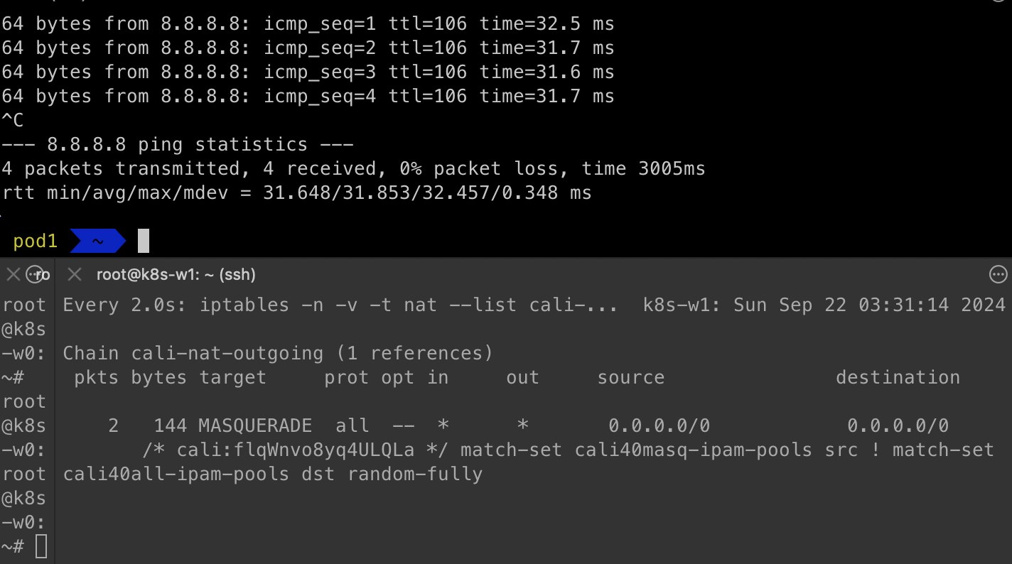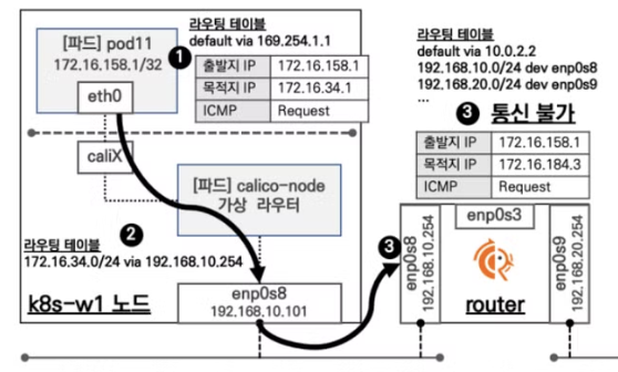 ⇒ 다른 대역대인 worker-node0와 통신시 실패!