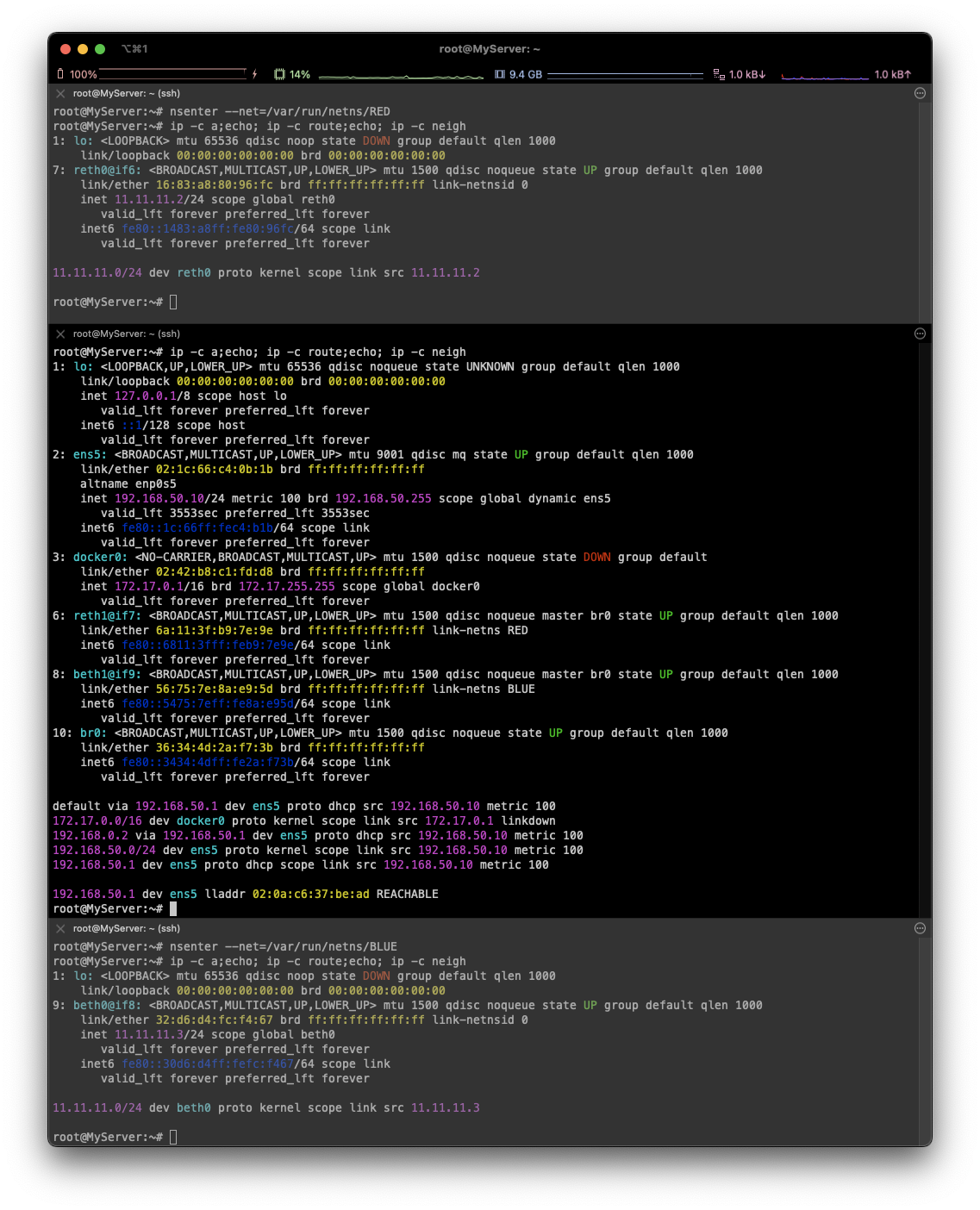ip netns exec BLUE ip addr add 11.11.11.3/24 dev beth0