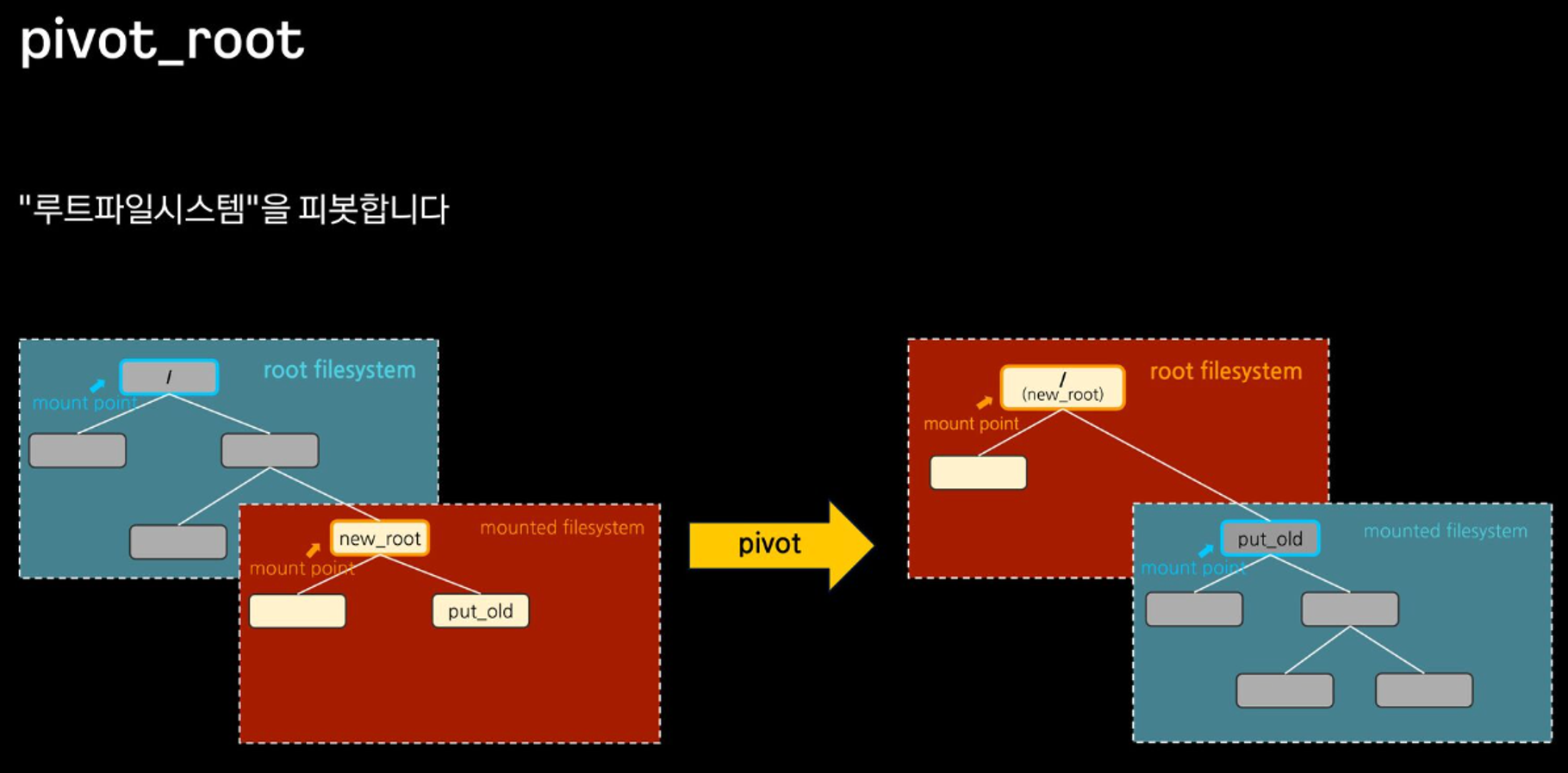 **pivot_root . put_old** # [신규 루트] [기존 루트]