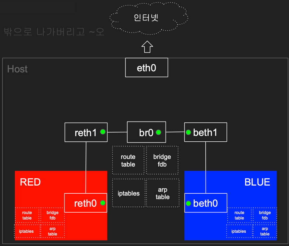 ## RED - BLUE 통신하려면 HOST의 ROUTE 필요!