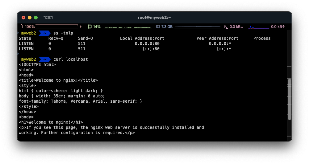컨테이너를 들어갔을 때 tcp 80 listen 상태