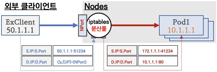 마치 L4 Service처럼 작동하며, NAT는 위와 같이 동작한다.