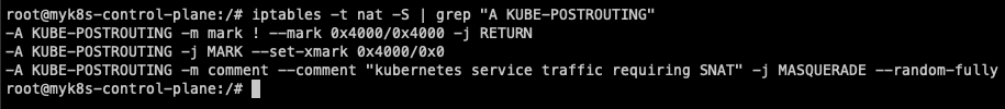 iptables -t nat -S | grep KUBE-POSTROUTING