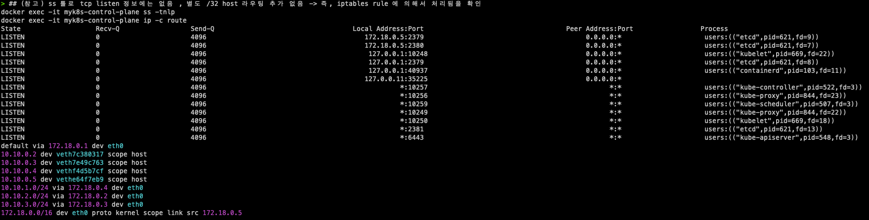 ⇒ 현재 k8s 버전에서는 포트 Listen 되지 않고, iptables rules 처리