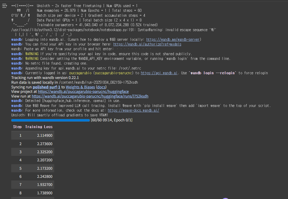 Now let's use Huggingface TRL's SFTTrainer! More docs here: TRL SFT docs. We do 60 steps to speed things up, but you can set num_train_epochs=1 for a full run, and turn off max_steps=None. We also support TRL's DPOTrainer!