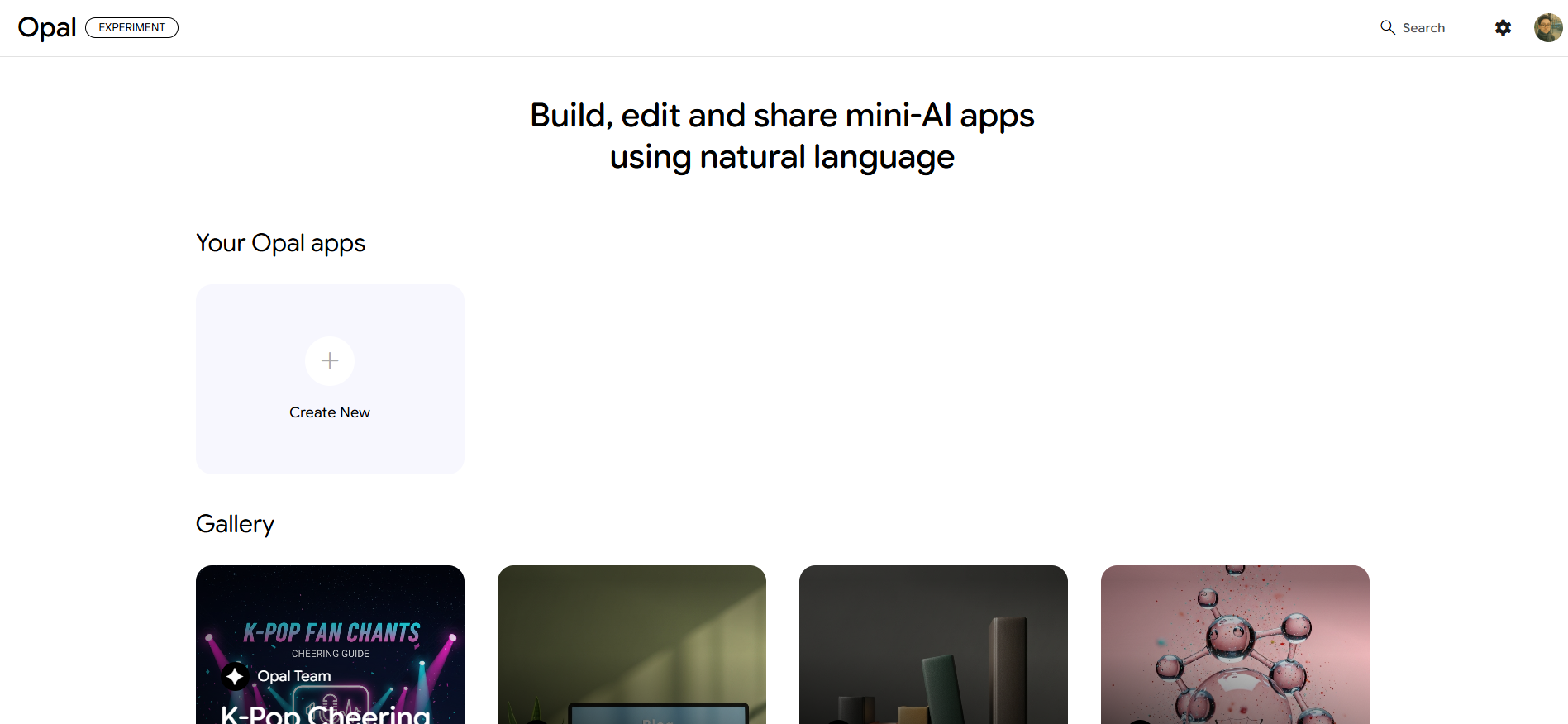 Opal 소개: 설명만으로 제작하고, 공유하는 AI 미니 앱