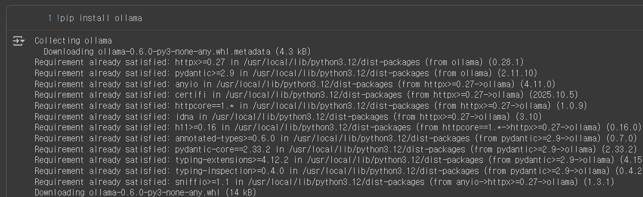 ollama 를 파이썬에서 쓰기 위한 라이브러리 설치