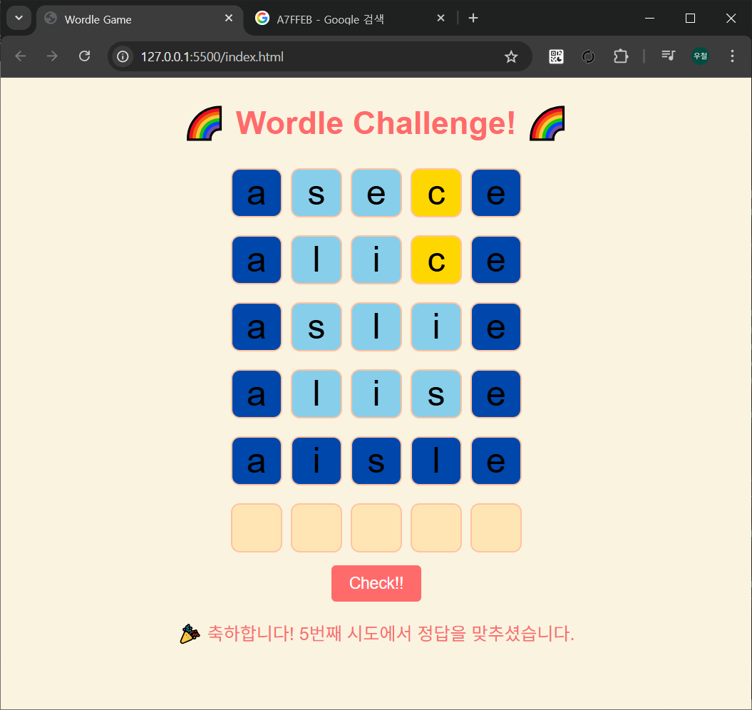 <h1>🌈 Wordle Challenge! 🌈</h1>