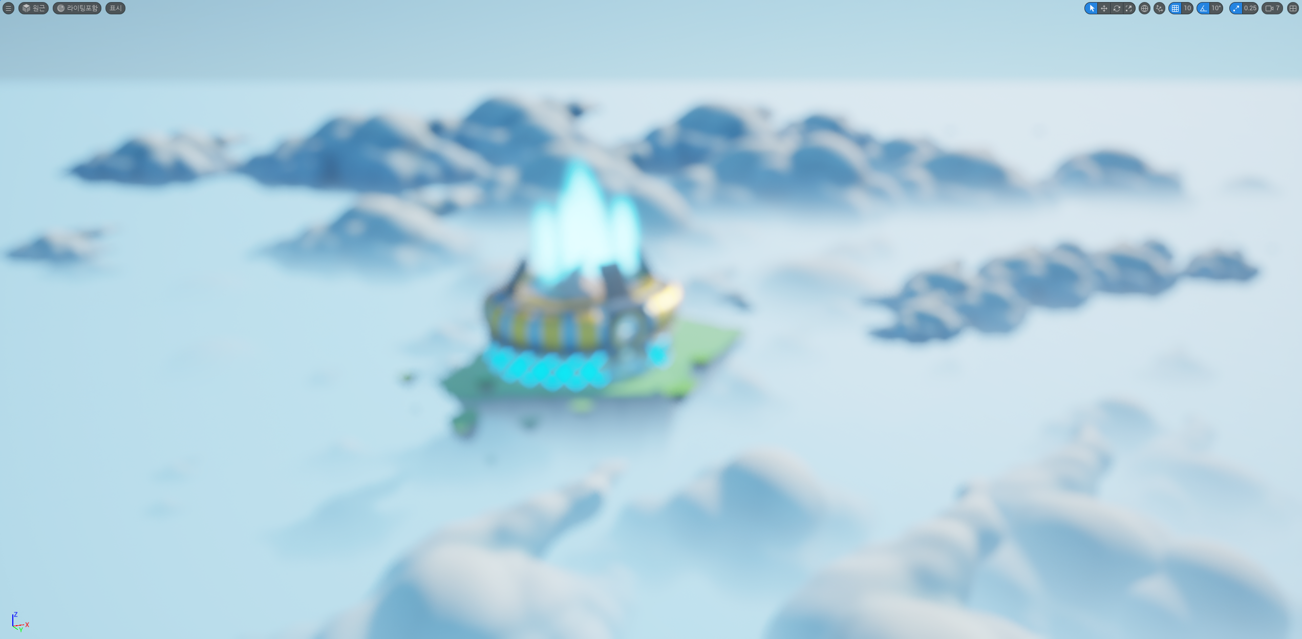 멀리서 봤을 때 구름과 잘 어우러지면서 웅장함을 표현하고 싶었어서 좀 크게 만들어봤다.