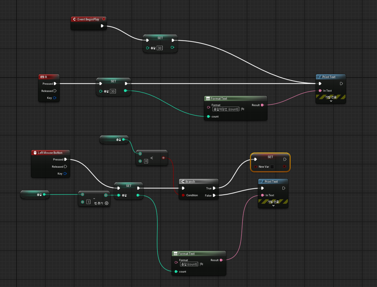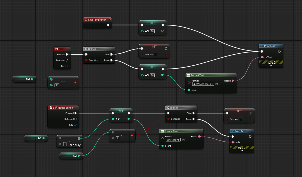 사실 조건에 충족하도록 굉장히 다양한 방법으로 설계할 수 있는데 그게 또 블루프린트의 매력인 것 같다.