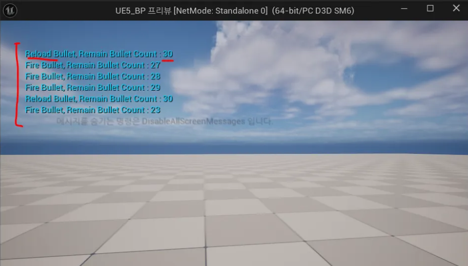 블루프린트를 이용해 총알을 발사하고, 재장전하는 기능을 만들어 보았다.
