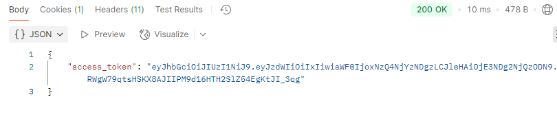 200 OK 와 함께 Access 토큰이 Body 로 반환된다.